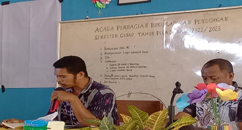 SD INPRES II WAIKOMO MENGGELAR ACARA PEMBAGIAN BUKU LAPORAN PENDIDIKAN SEMESTER GENAP TAHUN PELAJARAN 2022/2023
